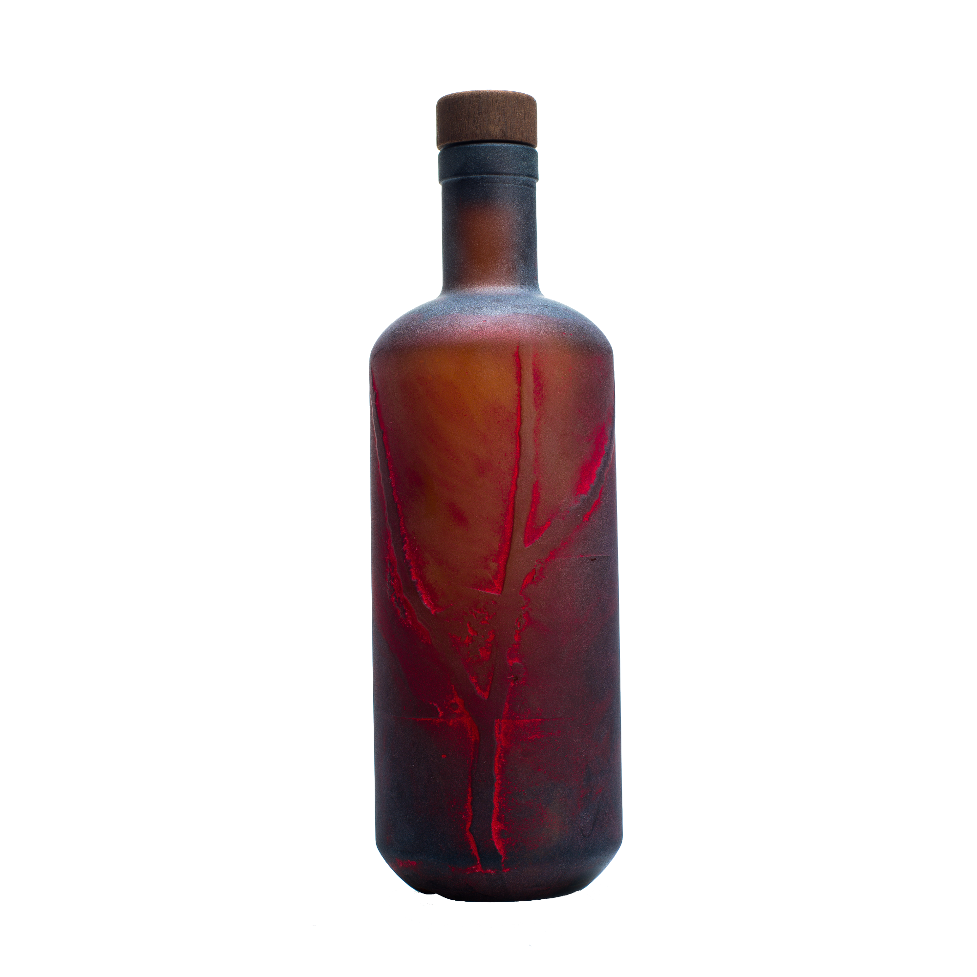 Die Koordinaten 48,17315° N, 15,93936° O stehen für den Ort, an dem alles begann. Hier steht er, der Wildkirschbaum. Seine Zweige wurden per Sandstrahltechnik auf jede einzelne Flasche übertragen und anschließend mit Siebdruckfarbe von Hand übermalt.