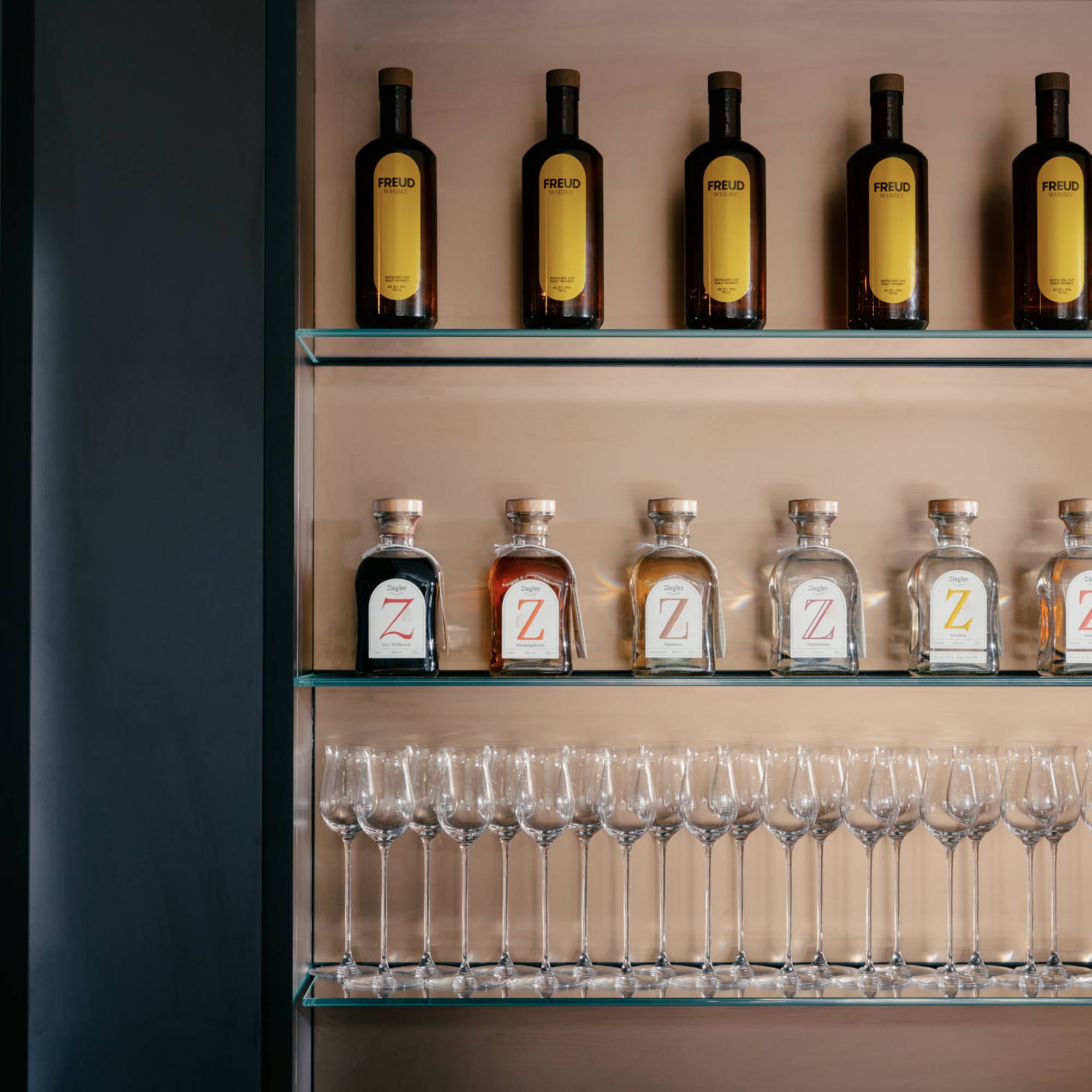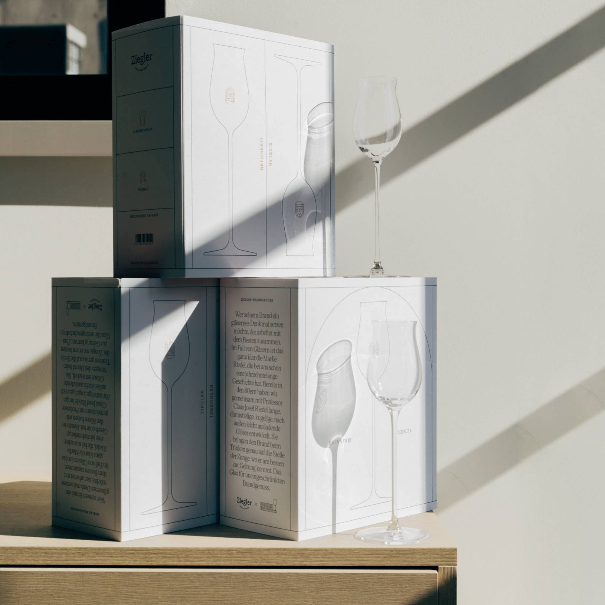 Wer seinem Brand ein gläsernes Denkmal setzen möchte, der arbeitet mit dem besten zusammen. Im Fall von Gläsern ist das ganz klar die Marke Riedel, die bei uns schon eine jahrzehntelange Geschichte hat. Bereits in den 80ern haben wir gemeinsam mit Professor Claus Josef Riedel lange, dünnstielige, kugelige, nach außen leicht ausladende Gläser entwickelt. Sie bringen den Brand beim Trinken genau auf die Stelle der Zunge, wo er am besten zur Geltung kommt. Das Glas für uneingeschränkten Brandgenuss.